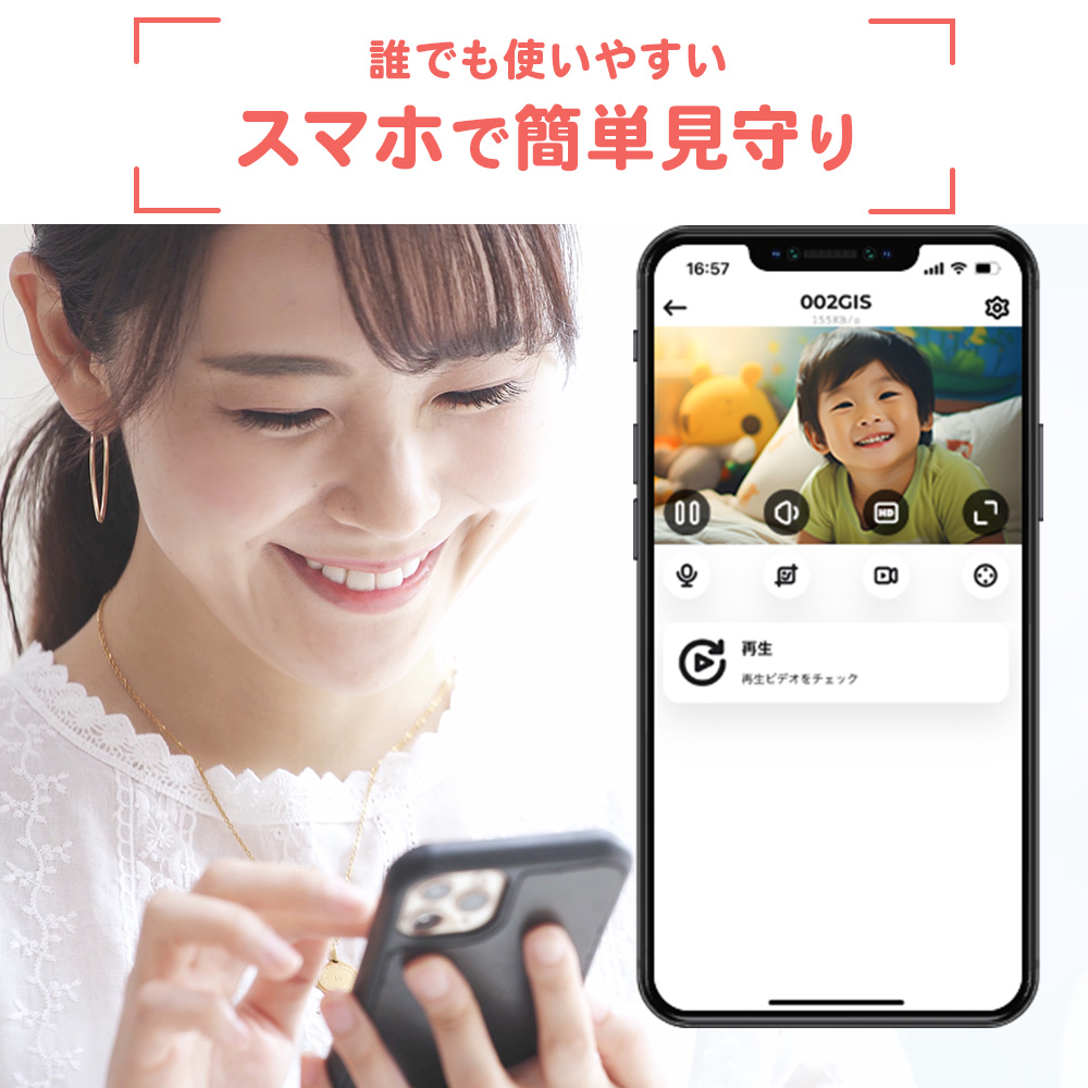 高画質録画機能と動体検知による自動録画で大切な人を24時間見守ります。